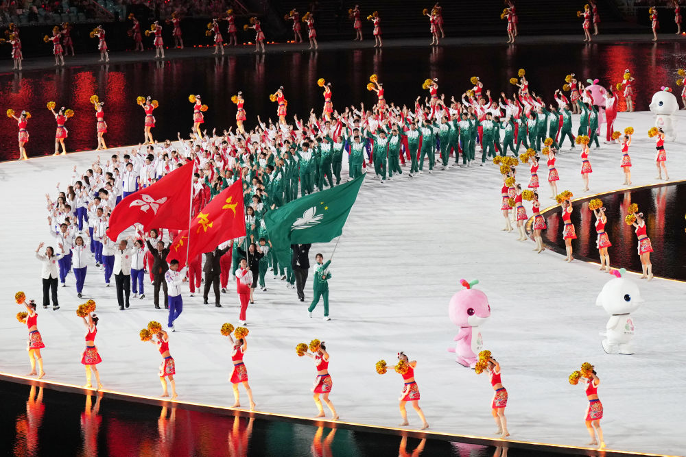 ↑11月9日,廣東省體育代表團、香港特別行政區體育代表團和澳門特別行政區體育代表團在入場儀式上共同入場。