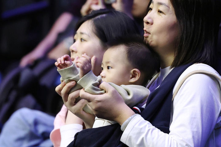 ↑11月11日,在澳門舉行的第十五屆全國運動會女子排球成年組小組賽B組比賽中,觀眾在比賽現場加油助威。