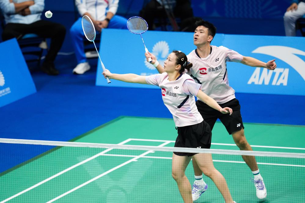 11月20日,浙江隊組合鄭思維/黃雅瓊(前)在比賽中。新華社記者 陳思汗 攝