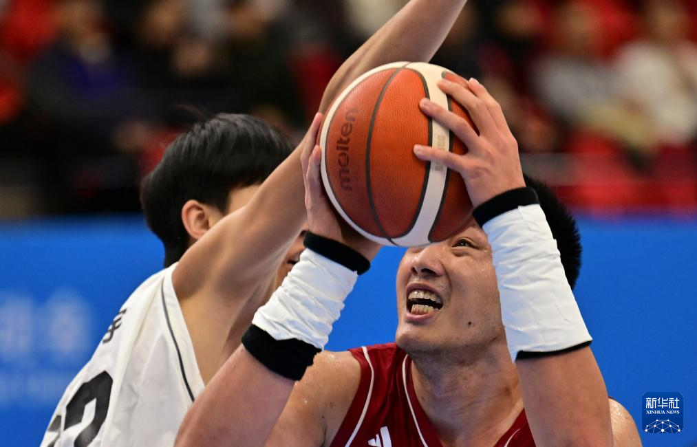 11月20日,北京隊球員偰李永煒(中)在比賽中上籃。