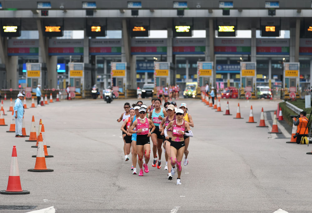 11月15日,全運會田徑項目女子馬拉松比賽參賽選手經過深圳灣口岸。新華社記者 毛思倩 攝