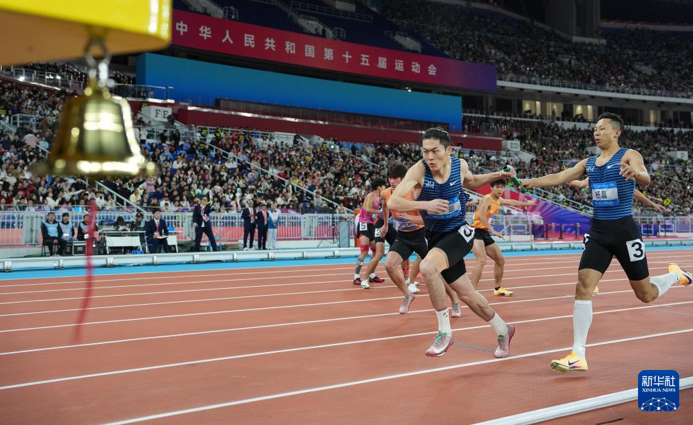 當日,第十五屆全國運動會田徑項目男子4X400米接力決賽在廣州舉行。