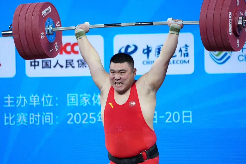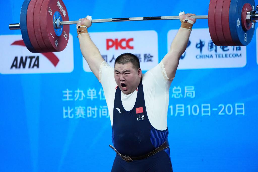 11月20日,河北隊選手張喜亮在挺舉比賽中。新華社記者 楊晨光 攝