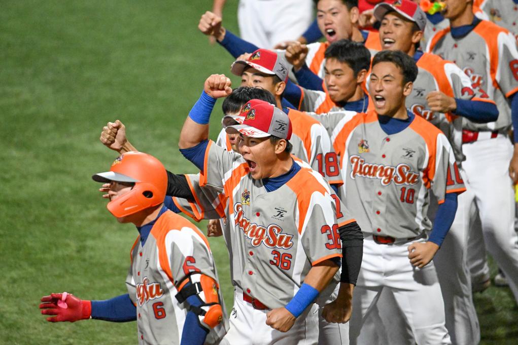 首局江蘇隊先聲奪人,王磊安打幫助李孝煬得分,江蘇隊1:0領先。第四局廣東隊開始反擊,吳啟銳安打得分,江蘇隊失誤致伊帥得分,廣東隊2:1反超。場上最大變化來自第五局,江蘇隊前后擊出兩次安打,隨后陳晨轟下兩分本壘打,江蘇隊單局連得4分,取得5:2的領先。此后江蘇隊乘勝追擊,最終以11:2戰勝廣東隊,贏得冠軍。
