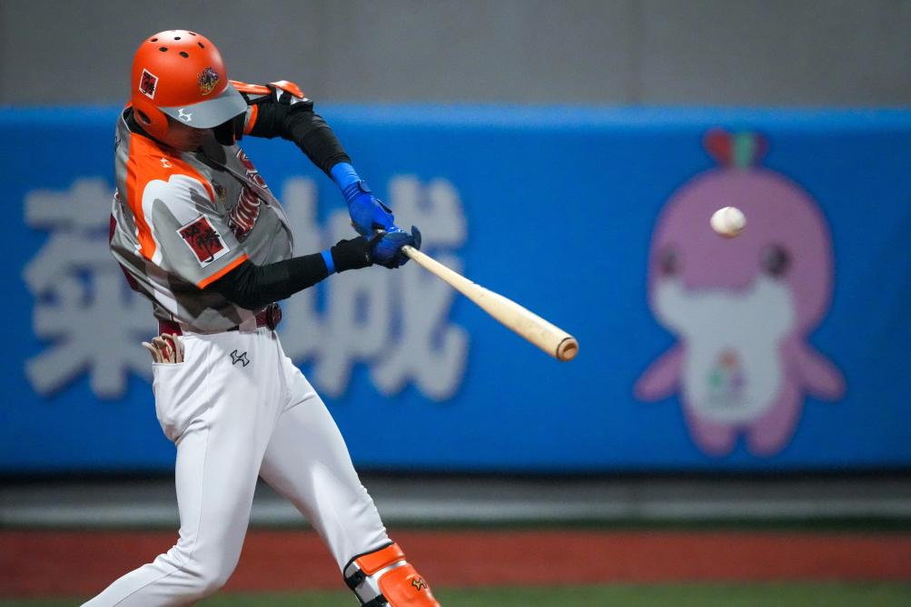 11月20日,江蘇隊球員慶祝隊友打出本壘打。新華社記者 丁磊 攝