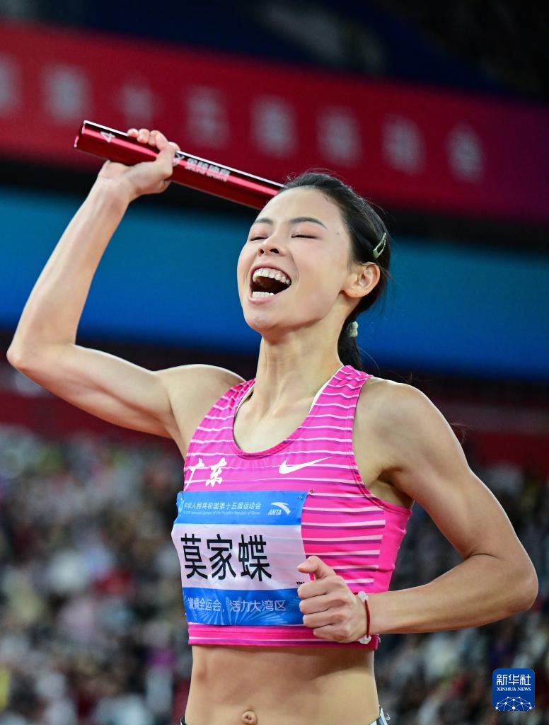 11月20日,廣東隊選手莫家蝶在比賽中沖線后慶祝。廣東隊獲得冠軍。