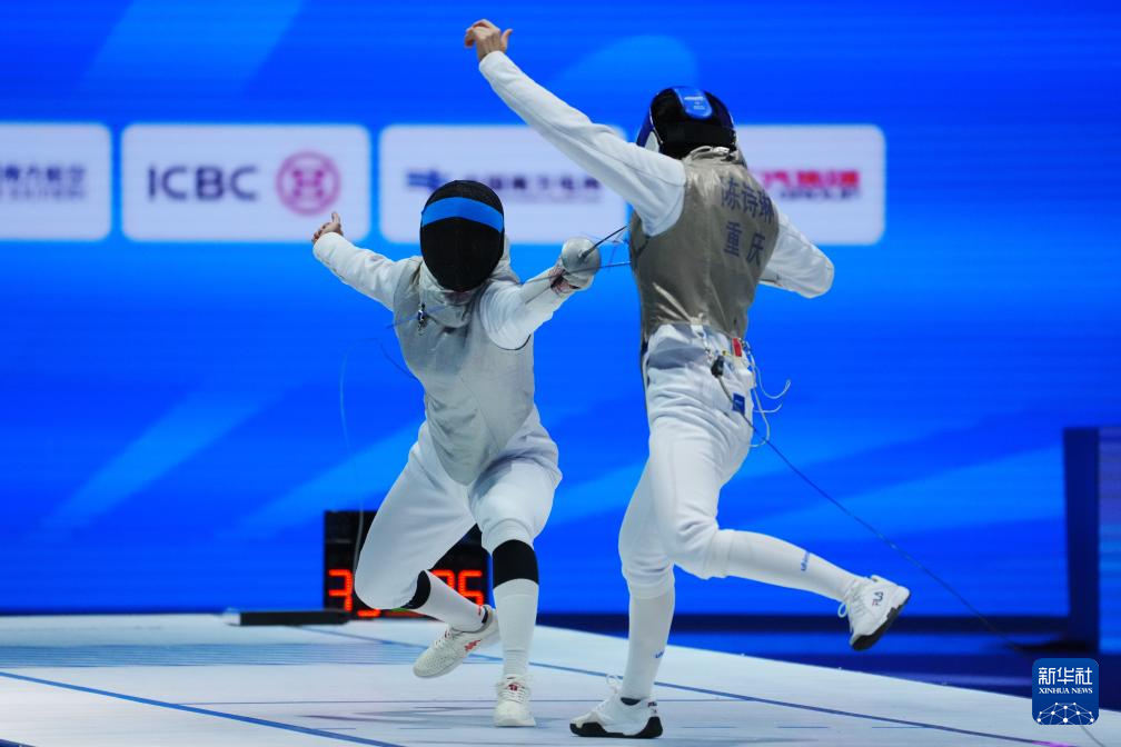 11月20日,福建隊選手焦恩祺(左)和重慶隊選手陳詩琳在比賽中。