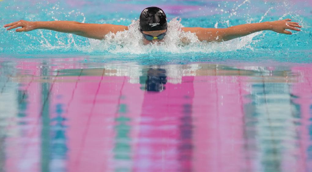 11月15日,江蘇隊選手呂沁遙獲得女子200米蛙泳冠軍。新華社記者杜宇攝