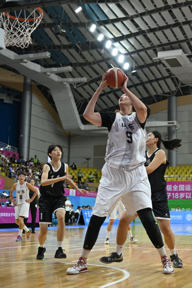 11月11日,山東隊球員張子宇在女子籃球18歲以下組四分之一決賽中。新華社記者王松攝