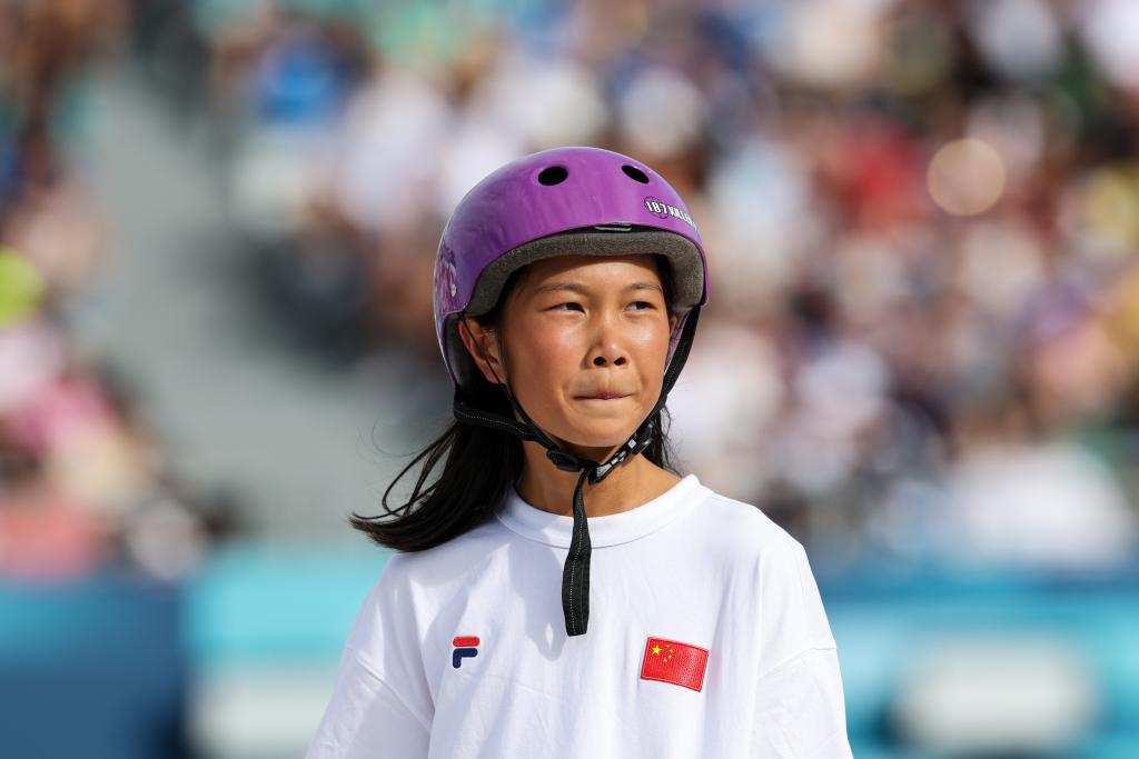 2024年7月28日,中國選手崔宸曦在巴黎奧運會滑板女子街式決賽中。新華社記者朱崢攝
