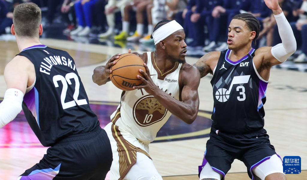 11月24日,勇士隊球員巴特勒(上左)在比賽中上籃。