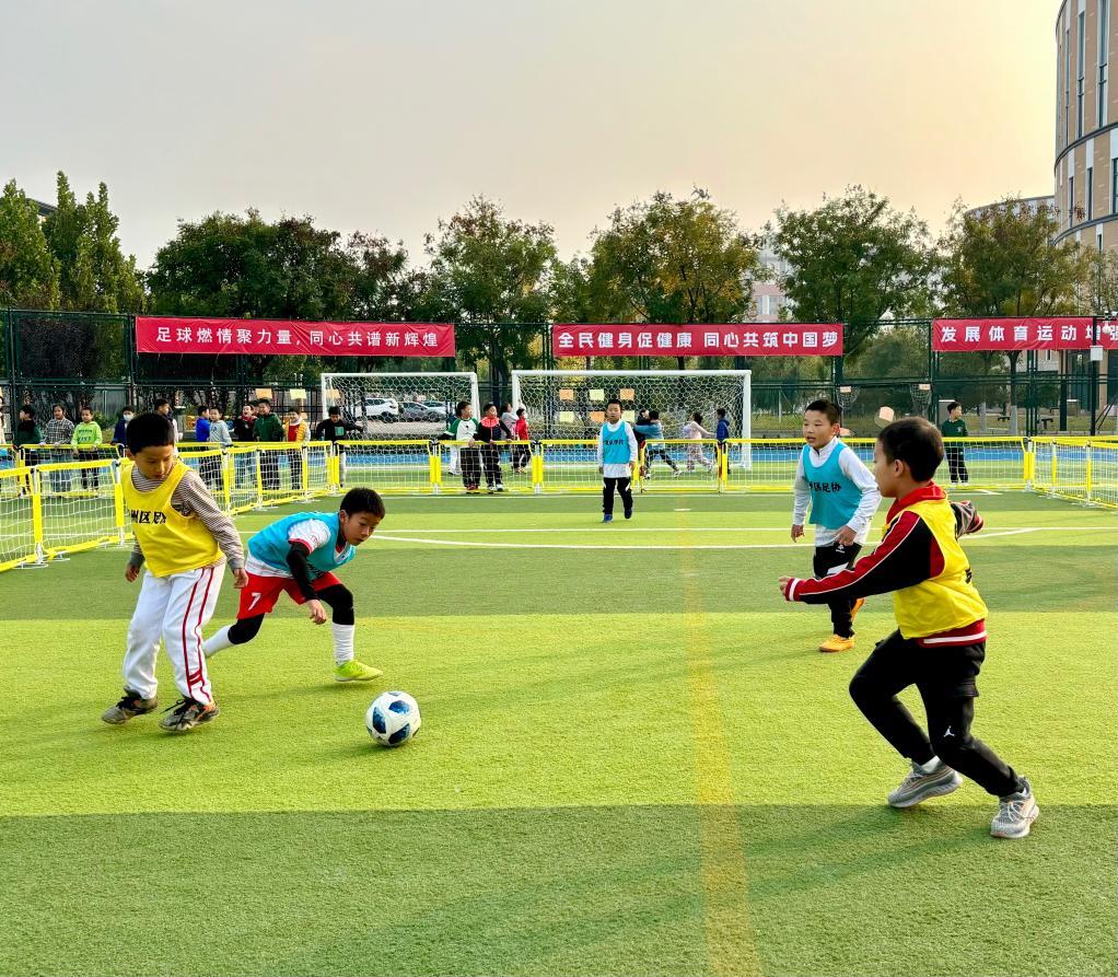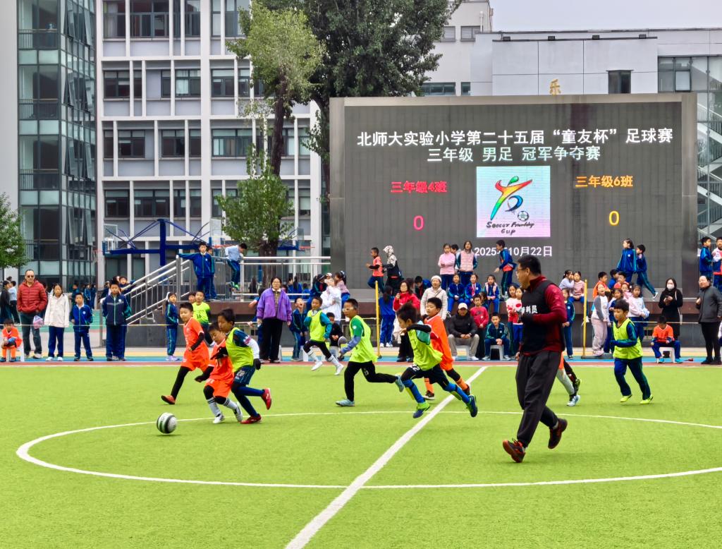 午后,暖陽灑在黃城根小學的綠茵場上。經過一個多月的較量,校內“班超”聯賽迎來“巔峰對決”。三年級1班與16班上場爭冠,吶喊聲、擂鼓聲一浪高過一浪。帶球、搶斷、傳球,碰撞、摔倒、爬起——孩子們動作略顯稚嫩,但拼勁動人心魄。