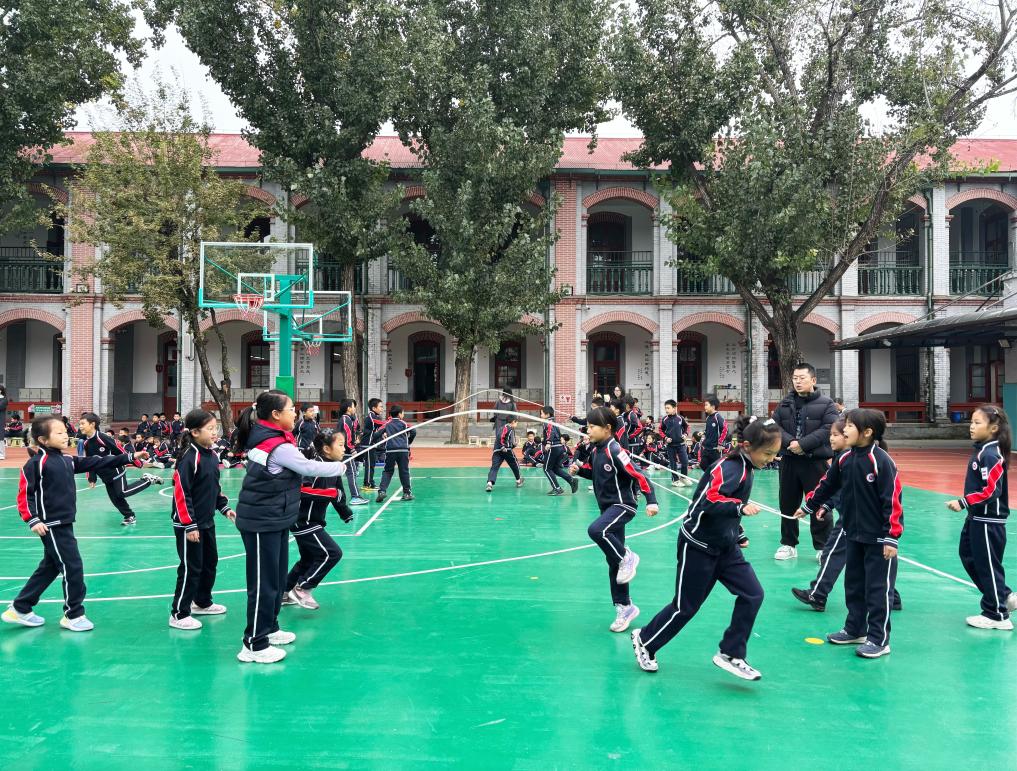 步入京華實驗學校,跳繩的孩子們站滿了整個操場,躍動的青春與古樸的教學樓相映成趣。在這場全校規模的跳繩大賽中,一、二年級學生為高年級學長學姐連貫的雙繩花式跳驚呼連連;高年級學生則為學弟學妹們上場參賽加油鼓勁。
