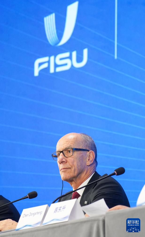 11月26日,國際大學生體育聯合會主席雷諾·艾德在新聞發布會上。新華社記者 許暢 攝