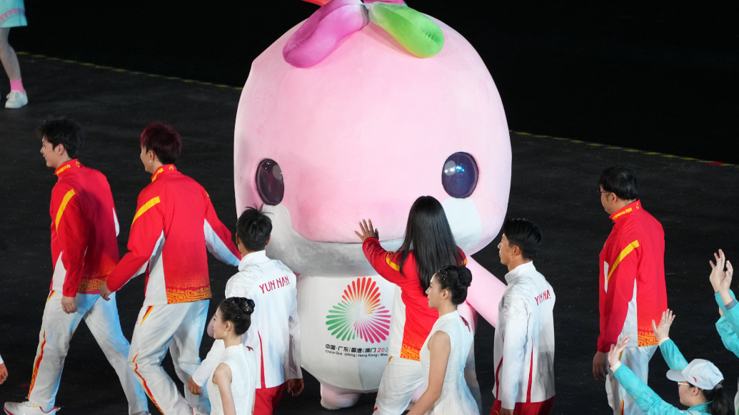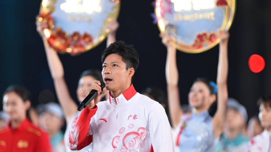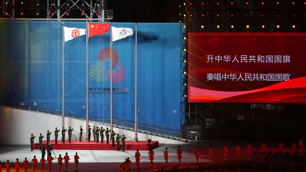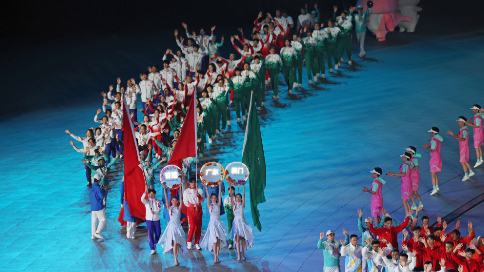 廣東、香港和澳門代表團代表在閉幕式上一同入場