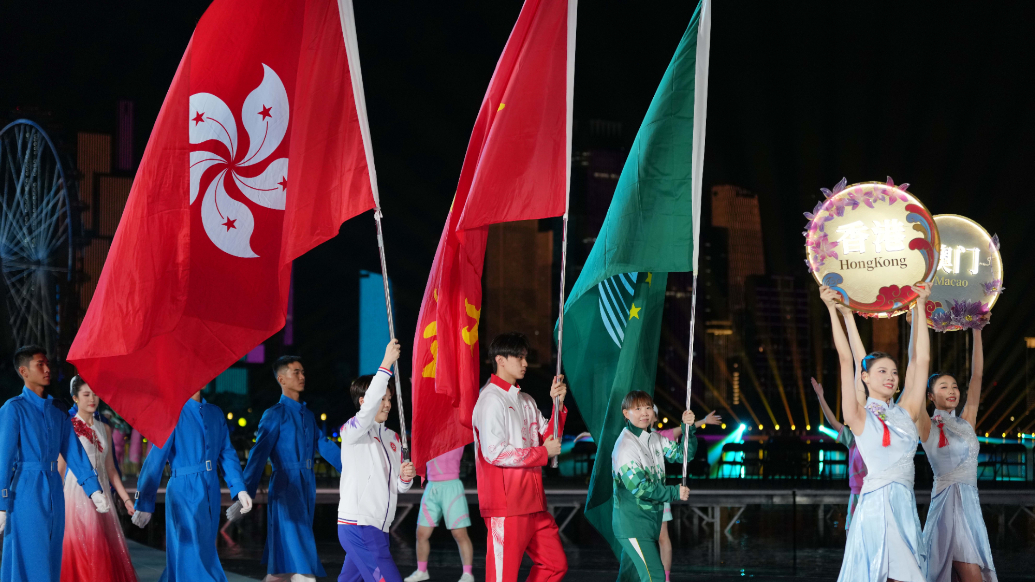 現在,交接中華人民共和國運動會會旗。有請第十五屆全運會組委會主任、國家體育總局局長高志丹,第十五屆全運會組委會執行主任、廣東省省長孟凡利,第十五屆全運會組委會執行主任、香港特別行政區行政長官李家超,第十五屆全運會組委會執行主任、澳門特別行政區行政長官岑浩輝,第十六屆全運會承辦地湖南省省長毛偉明。[ 2025-11-21 20:34:25 ]