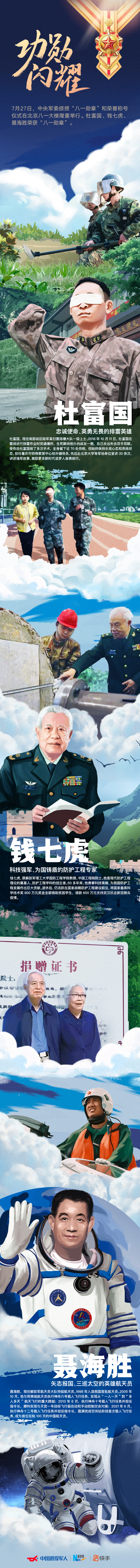 7月27日,中央軍委頒授“八一勛章”和榮譽稱號儀式在北京八一大樓隆重舉行。杜富國、錢七虎、聶海勝榮獲“八一勛章”。