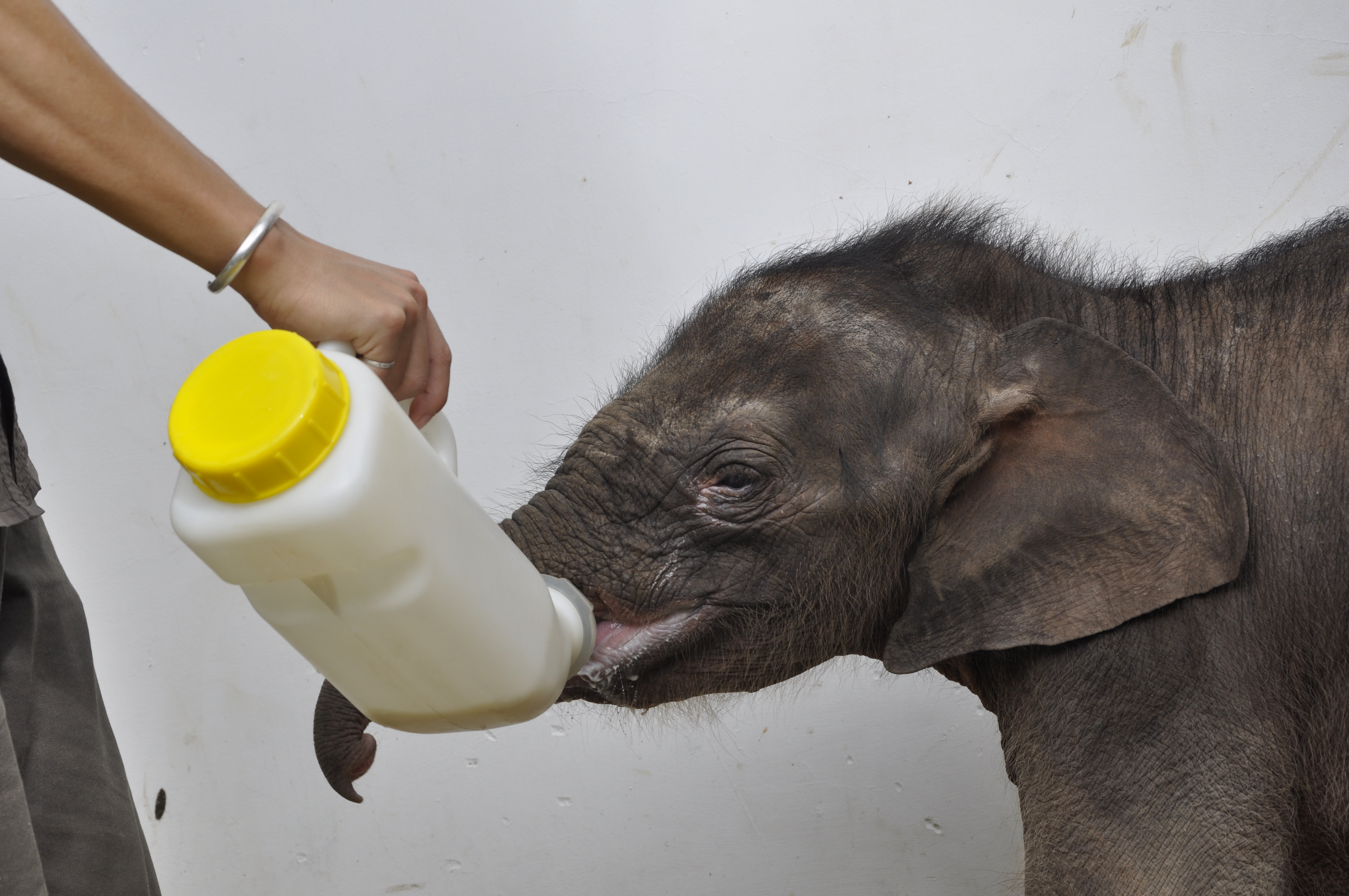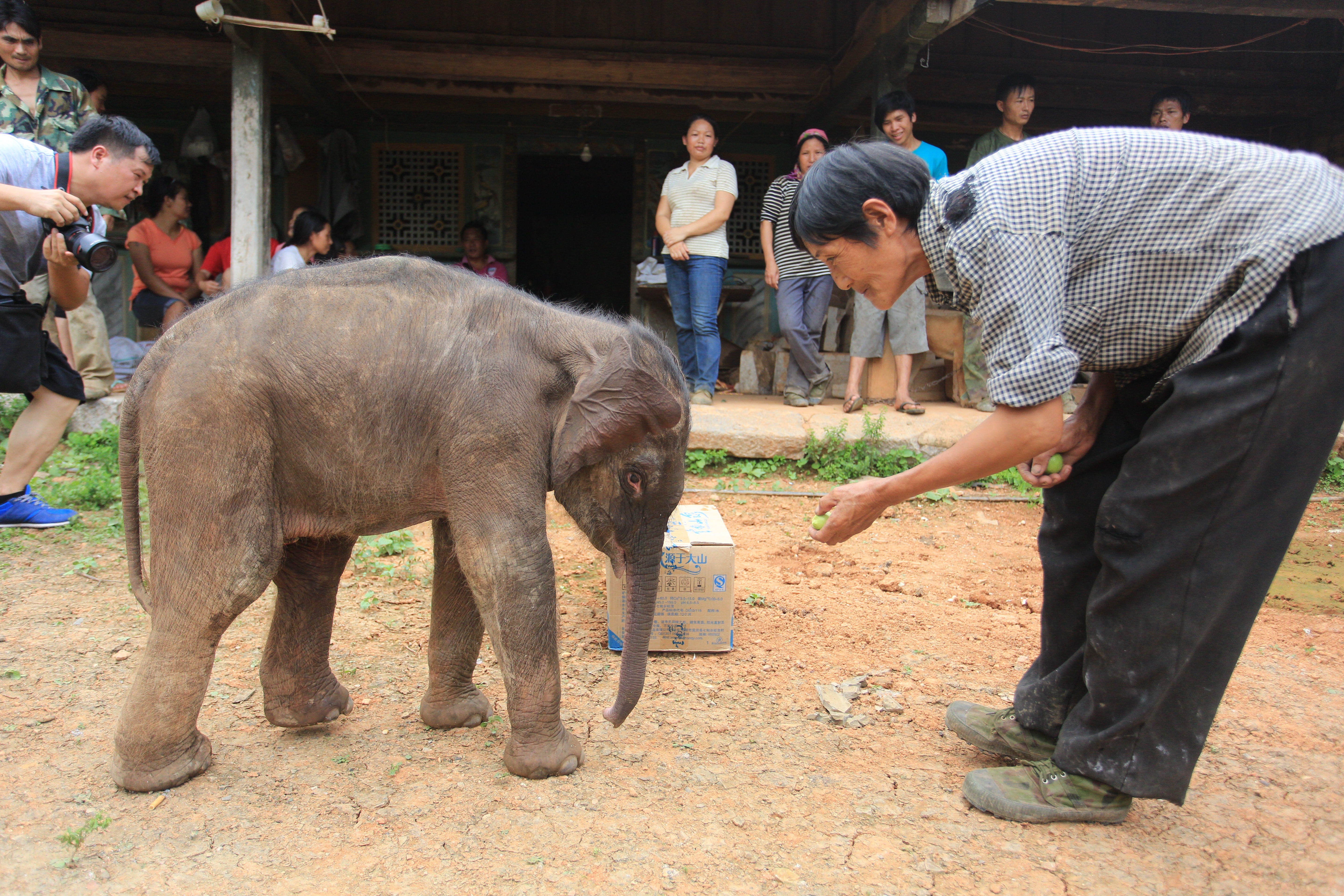 “羊妞”被救助時僅出生7天,是西雙版納亞洲象救護與繁育中心投入使用以來,第一次嘗試救助這么小的幼象。當時“羊妞”出現腹瀉、心律不齊等癥狀,甚至在轉運到中心的途中,還出現了休克的情況?!把蜴ぁ钡牡谝蝗巍跋蟀职帧标惱^銘說,在現場的工作人員都覺得情況不樂觀,但大家都不愿說破,全身心為“羊妞”努力著。