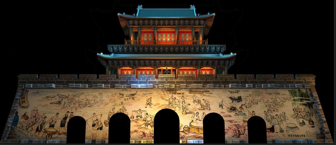 近日,中國汾酒城東城樓上演了一場“汾芳酒城·香溢世界”為主題的投影秀。采用立體聲、光、電等技術,投影秀在60米超長“畫卷”上進行三維樓體投射。動感的畫面、激昂的音樂與雄偉的建筑交相輝映、相互融合,展現了汾酒悠久的歷史文化、深厚的文化底蘊與精湛的釀造技藝。