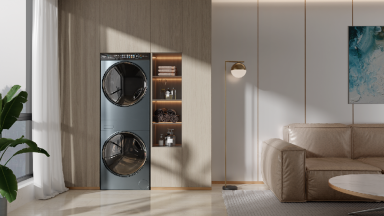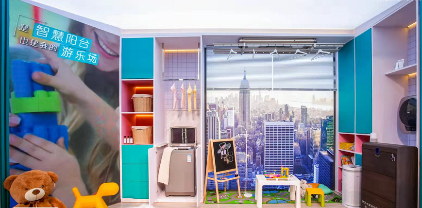 在智慧陽臺場景中,海爾洗衣機、干衣機實現了洗烘聯動,無需手動選擇,衣物即洗即穿,節省出晾曬空間,打造健身、親子、萌寵等新場景,為用戶帶來陽臺生活新方式。