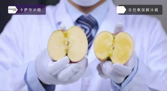 從控溫到控氧,卡薩帝不僅延長了食材的儲鮮時間,還留住更多營養。中國農業大學實驗數據顯示,在普通冰箱中保存7天的草莓花青素和葉酸保存率為64.4%和42.5%。在卡薩帝MSA控氧抽屜中保存7天的草莓花青素和葉酸含量是86.3%和82.7%。從卡薩帝最近發布的變色蘋果視頻也可以看到,一個蘋果被切成兩半分別放入卡薩帝控氧保鮮冰箱和普通冰箱,半小時后前者切面顏色無變化,后者明顯變色。
