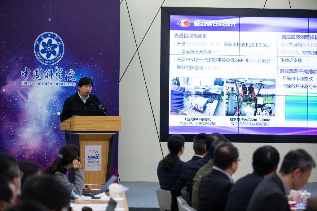 1月5日,在中科院國家天文臺舉行的新聞發布會上,FAST運行和發展中心常務副主任、總工程師姜鵬在介紹FAST運行及開放共享情況。新華社記者 金立旺 攝
