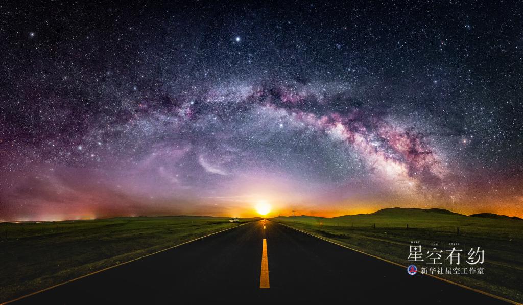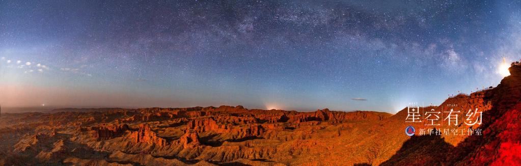 這是北京市天文愛好者王俊峰2019年5月11日在甘肅張掖平山湖拍攝的“銀河拱橋”。(本人供圖)