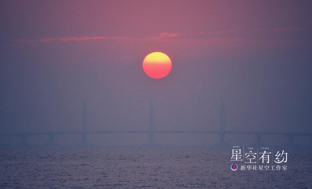 這是2022年1月1日在珠海拍攝的港珠澳大橋與新年初升的太陽。新華社發(黃繼明 攝)