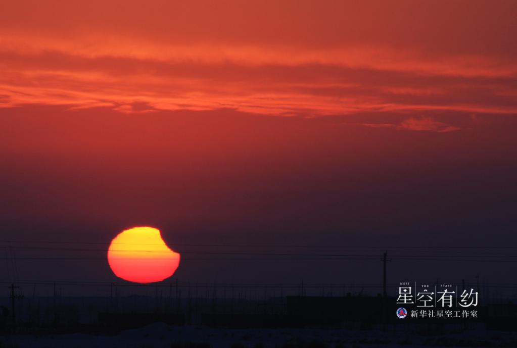 2011年1月4日在新疆哈密拍攝的“帶食日落”。新華社發(曹新加 攝)
