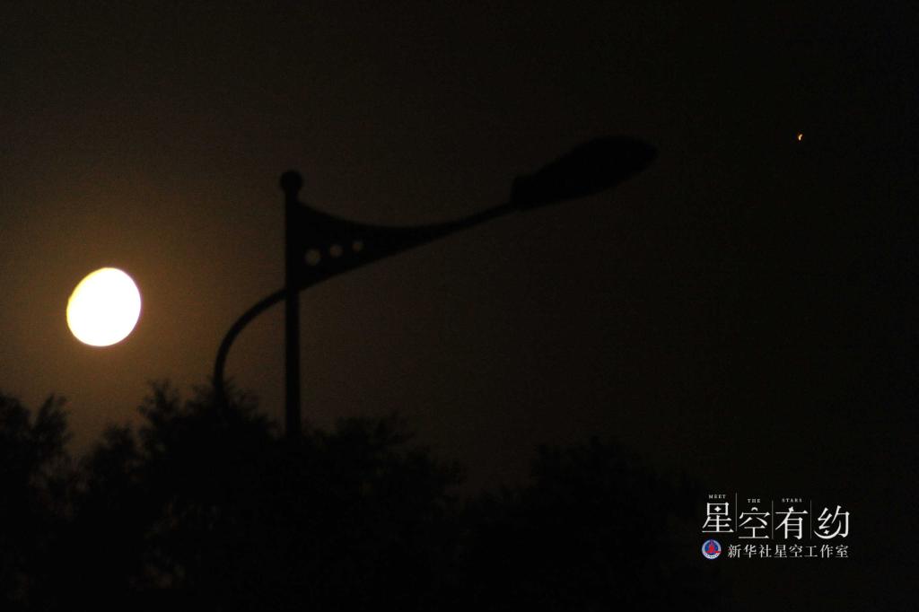這是2014年5月11日晚在山西省運城市新絳縣拍攝的火星合月。(新華社發)