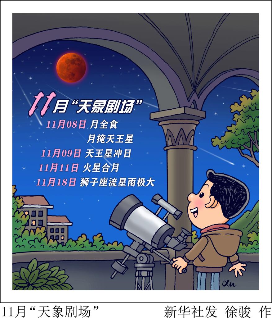 新華社天津10月31日電(記者周潤?。?1月“天象劇場”上新了。天文科普專家介紹,月全食、月掩天王星、天王星沖日、火星合月、獅子座流星雨極大等天象將輪番上演,其中,年度大戲——月全食最值得期待,我國公眾不要錯過。