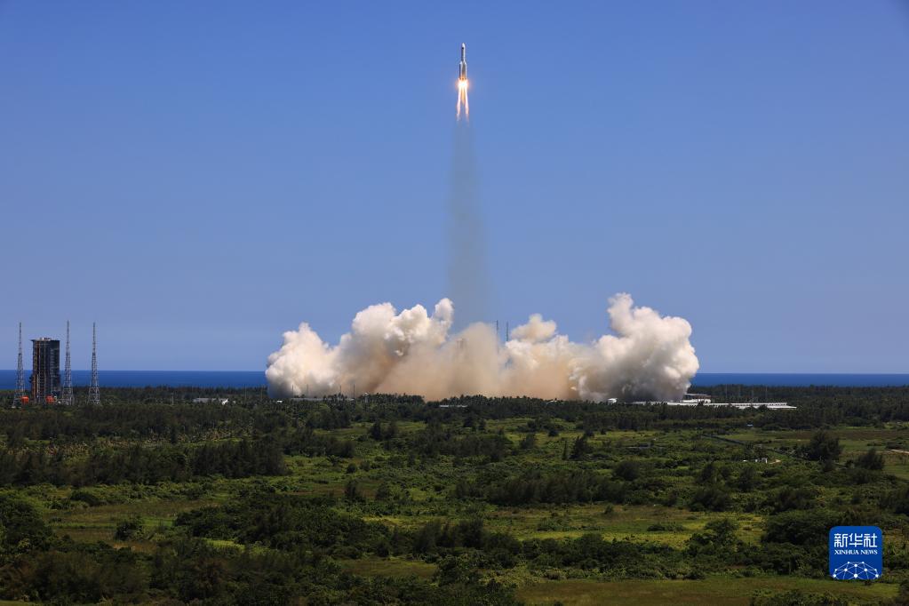 2021年4月29日11時23分,中國空間站天和核心艙在我國文昌航天發射場發射升空,準確進入預定軌道,任務取得成功。新華社記者 周佳誼 攝
