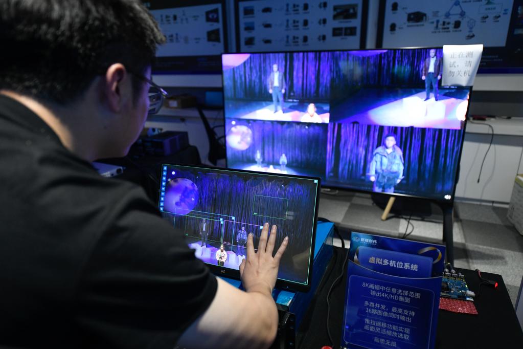 11月11日,工作人員在國家超高清視頻創新中心演示“虛擬多機位系統”。新華社記者 胥冰潔 攝