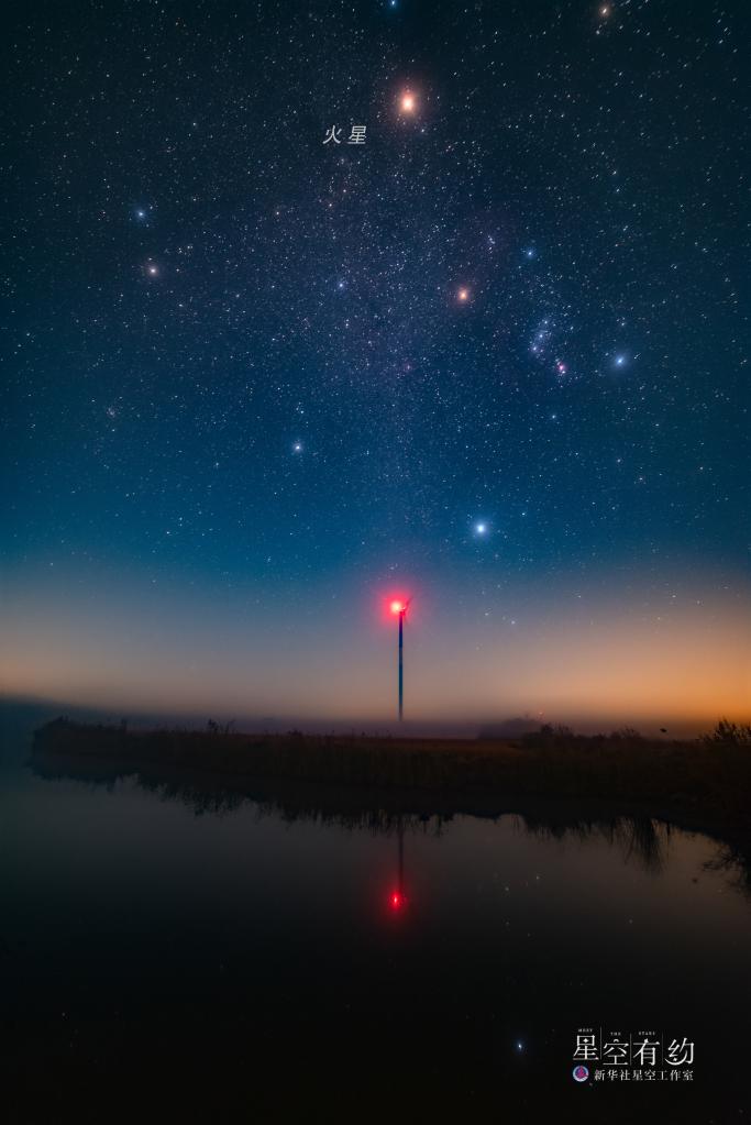 中國天文學會會員、天津市天文學會理事修立鵬介紹,8日日落后不久,明亮的火星從東南方升起,亮度約-1.8等,超過全天最亮的恒星天狼星,在深夜的星空中僅次于-2.5等的木星。