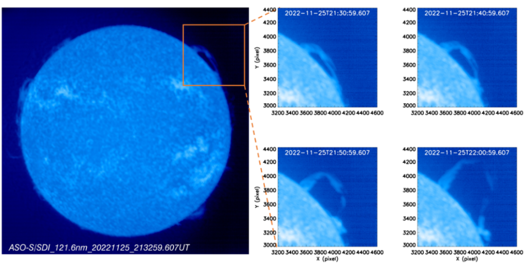 SDI/LST在2022年11月25日觀測到的爆發日珥。(中科院紫金山天文臺供圖)