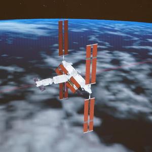 2022年12月29日在北京航天飛行控制中心拍攝的天舟五號貨運飛船與空間站組合體完成自主快速交會對接示意圖。新華社發(孫豐曉 攝)