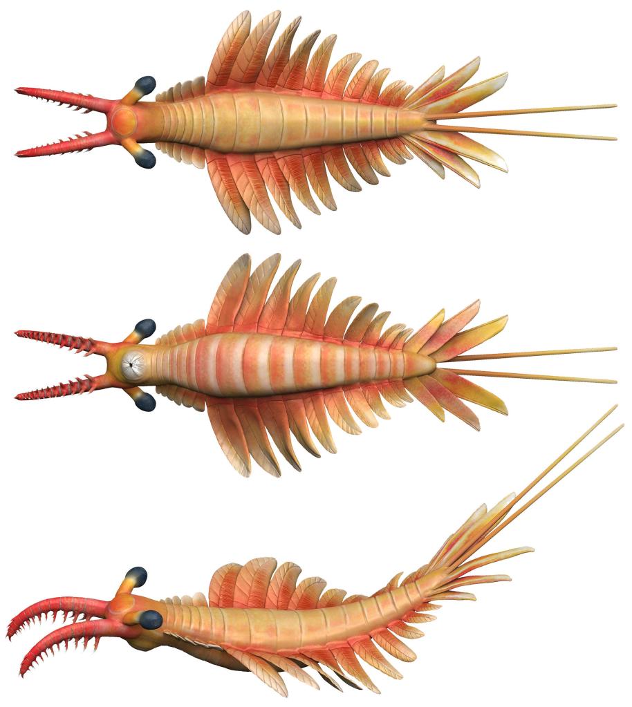 奇蝦出現在5億多年前的寒武紀早期。它們身體造型怪異,最長者體長超過2米,是最早稱霸海洋的頂級捕食者。此次研究的奇蝦化石采集于我國云南帽天山的澄江動物群,距今有5.18億年歷史,是澄江動物群的標志性化石之一。