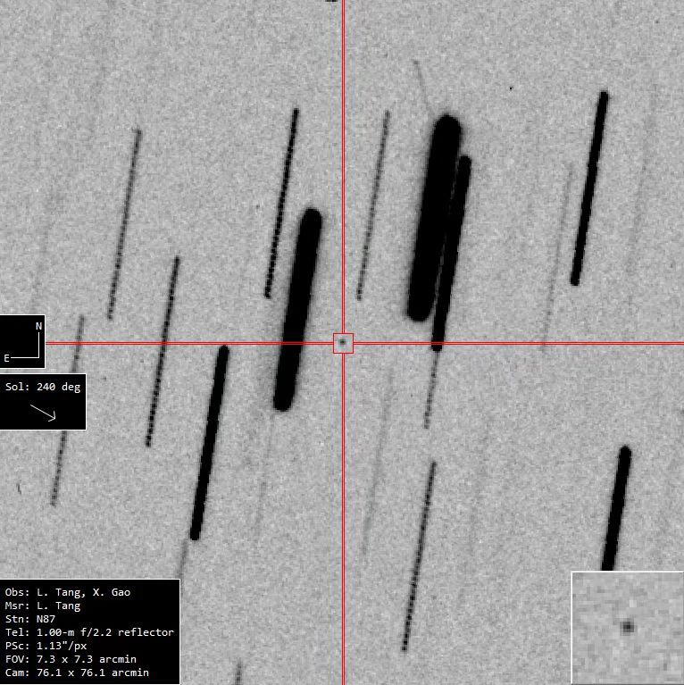 近地小行星2023 DB2發現圖像。(圖片由中國科學院新疆天文臺提供)
