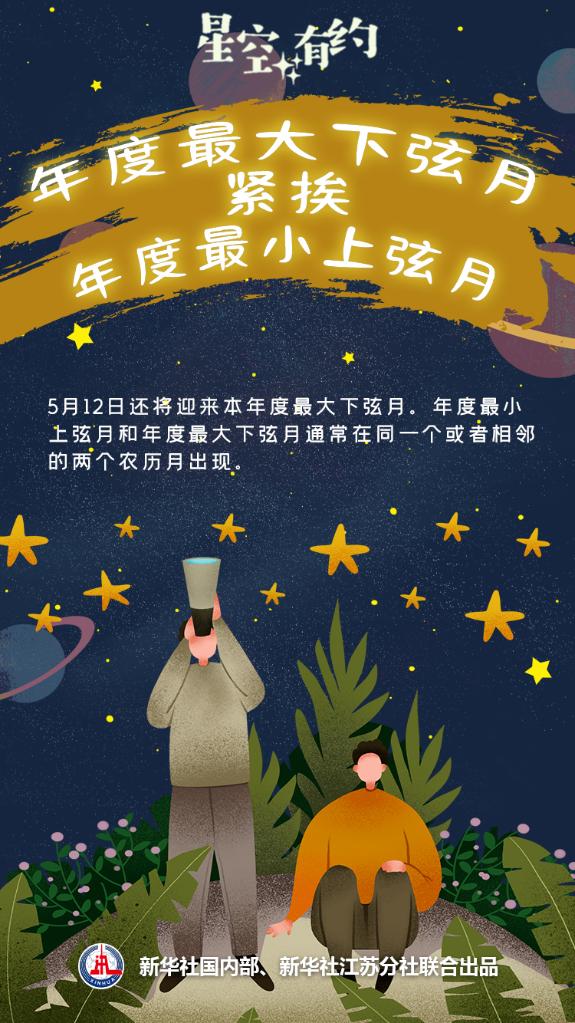 5月12日,即本年度最小上弦月現身后再過約半個月時間,還將迎來本年度最大下弦月。王科超解釋說,月球從近地點運行至遠地點平均需約14天時間,而上弦月和下弦月出現的平均間隔大約為15天,兩個周期間隔較為接近。因此,年度最小上弦月和年度最大下弦月通常在同一個或者相鄰的兩個農歷月出現。