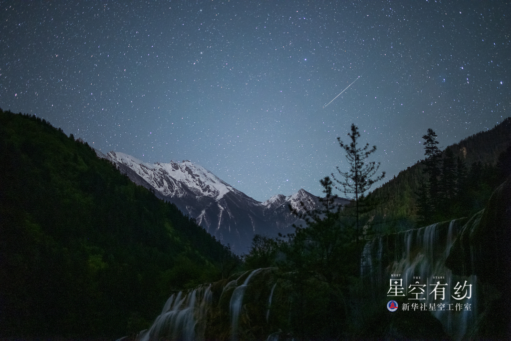這是重慶市天文攝影愛好者戴建峰2022年5月5日在四川九寨溝拍攝的寶瓶座η流星雨。(本人供圖)