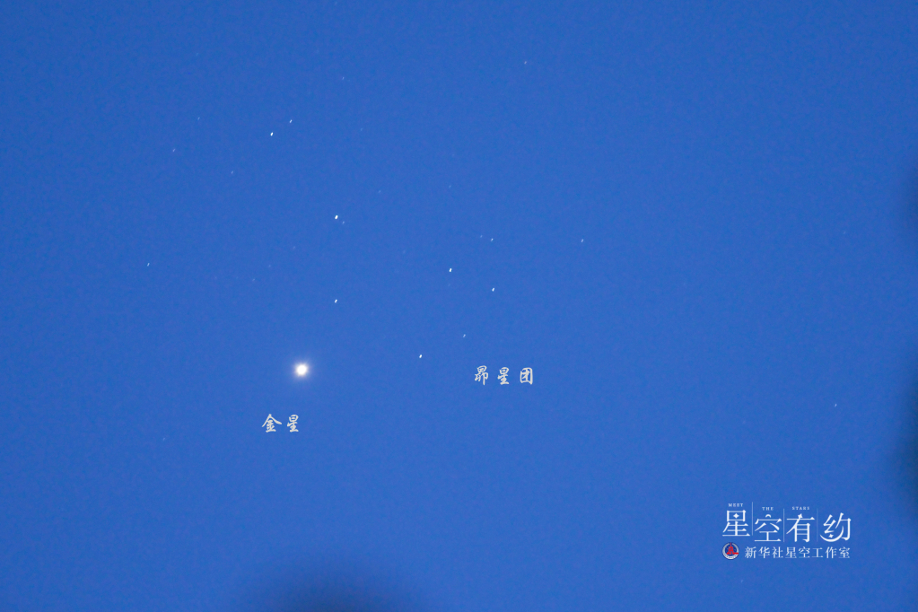 這是北京市天文攝影愛好者王俊峰2020年4月3日在北京房山拍攝的金星伴昴星團。(本人供圖)