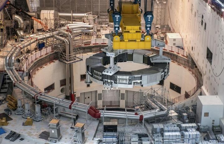 2021年4月,中國研制的PF6超導磁體線圈在法國ITER項目現場吊裝。新華社發