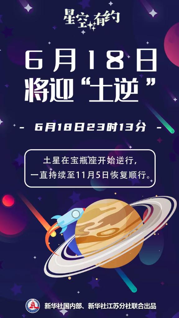新華社南京6月15日電(記者王玨玢、朱筱)中科院紫金山天文臺科普專家介紹,18日23時13分,土星在寶瓶座開始逆行,到11月5日恢復順行。什么是土星逆行?逆行時行星真的“倒著走”嗎?