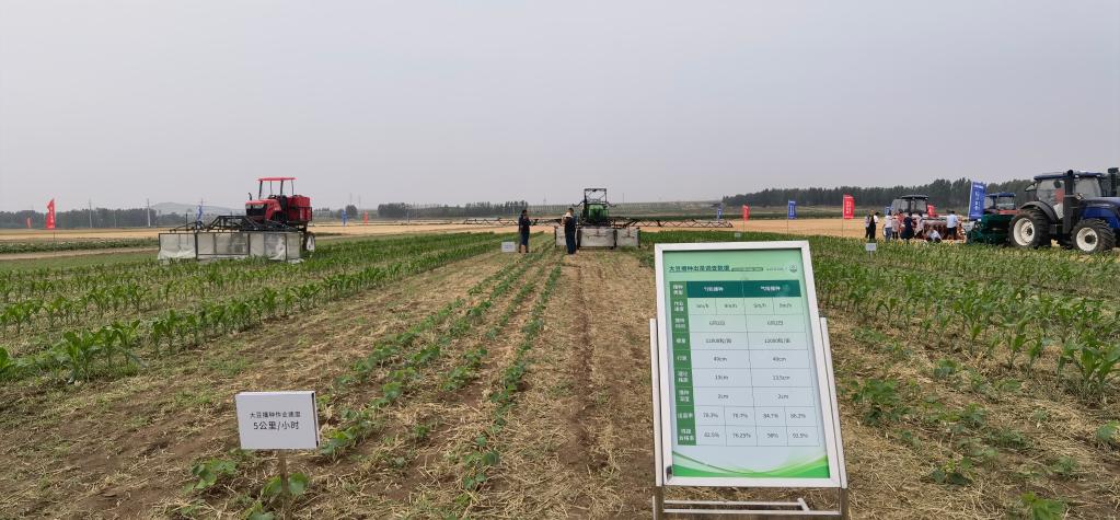 在糧食作物高質量機械化播種技術培訓演示現場,展示了不同機器、不同速度下播種情況和出苗情況。新華社記者 葉婧 攝