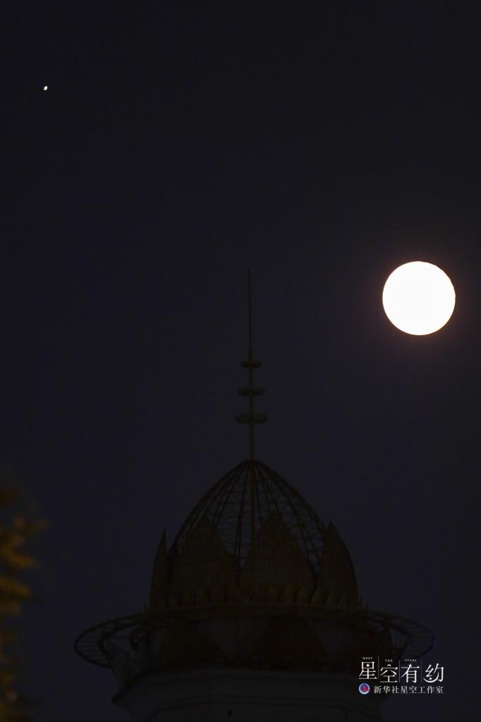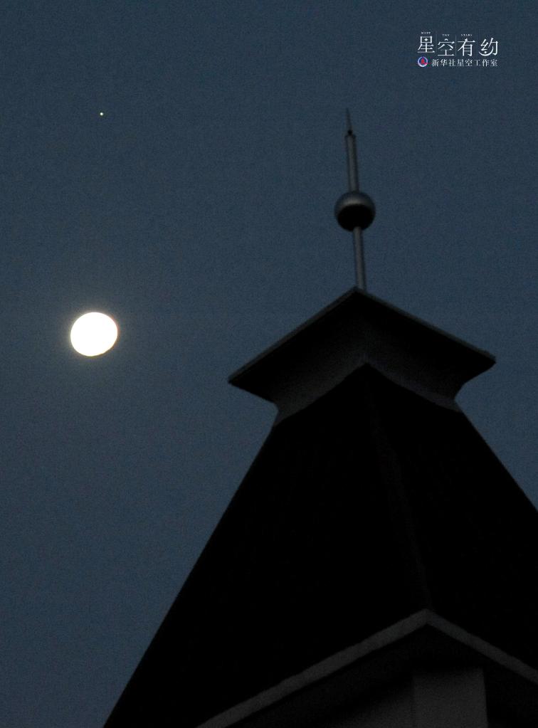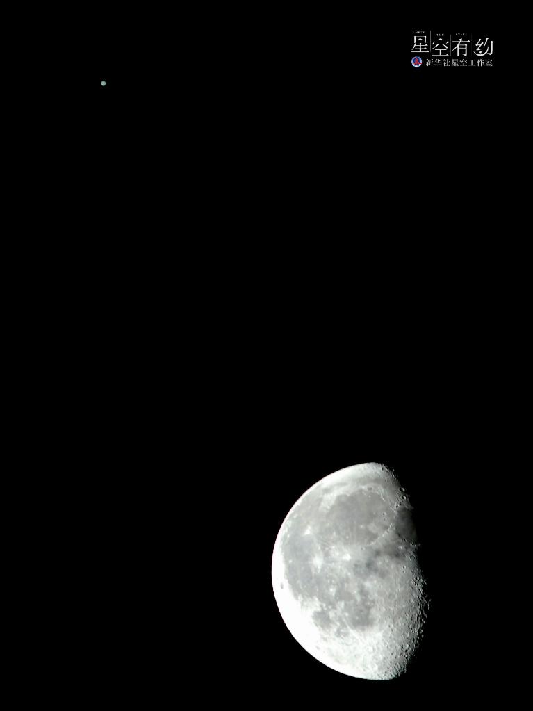 這是2022年9月11日晚在北京豐臺拍攝的木星與月亮。當晚,天宇上演木星合月的美麗天象。新華社記者張鋮 攝