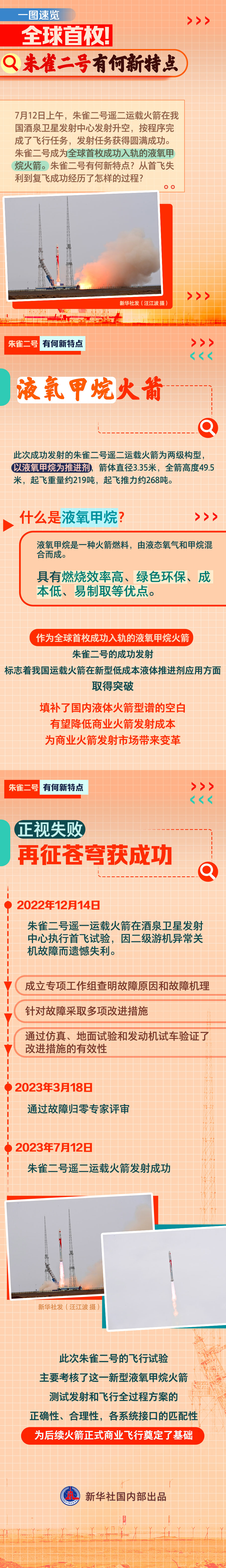 新華社北京7月12日電 題:全球首枚成功入軌的液氧甲烷火箭——朱雀二號有何新特點?