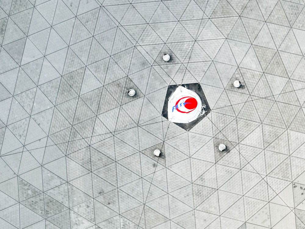 2021年3月29日拍攝的“中國天眼”測量基墩(維護保養期間拍攝)。新華社記者 歐東衢 攝