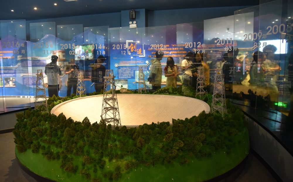 人們在貴州省平塘縣參觀“中國天眼”模型(2023年6月6日攝)。新華社記者 駱飛 攝