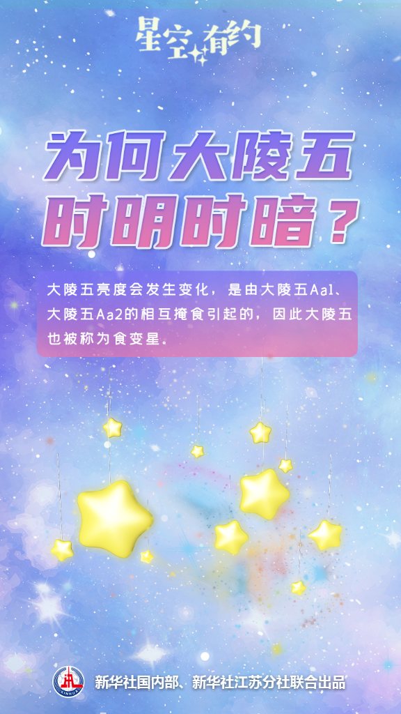 新華社南京11月4日電(記者王玨玢、邱冰清)11月的夜晚,東北方向的夜空之中閃爍著“一顆”時明時暗的星星。每隔兩三天,它的亮度就會經歷一輪變化,周而復始,就好像會“眨眼”一樣。這就是著名的變星:大陵五。變星是怎么回事?大陵五為什么會“眨眼”?天文科普專家為您揭秘。