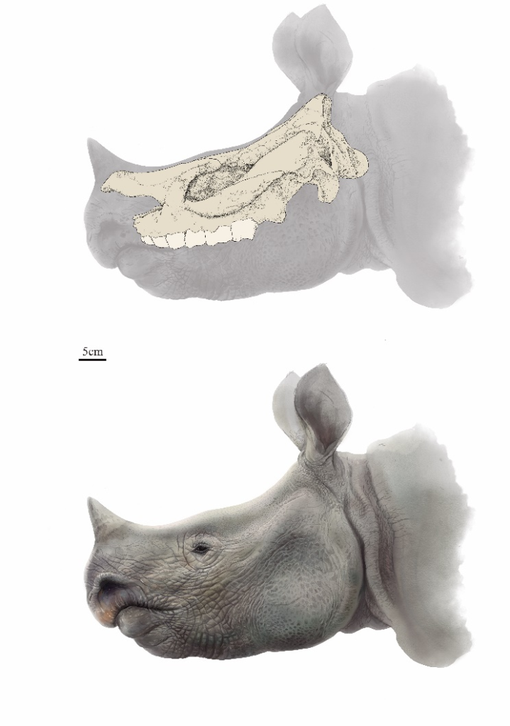 翹鼻角犀頭部復原圖。(中國科學院古脊椎所供圖)